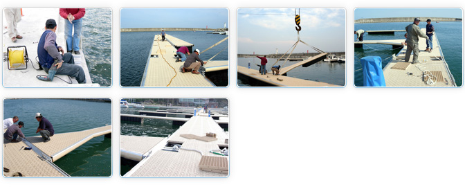 시공된 파일에 폰툰을 결합하는 과정으로 국내, 외 전문 시공팀에 의해 완성됩니다. |